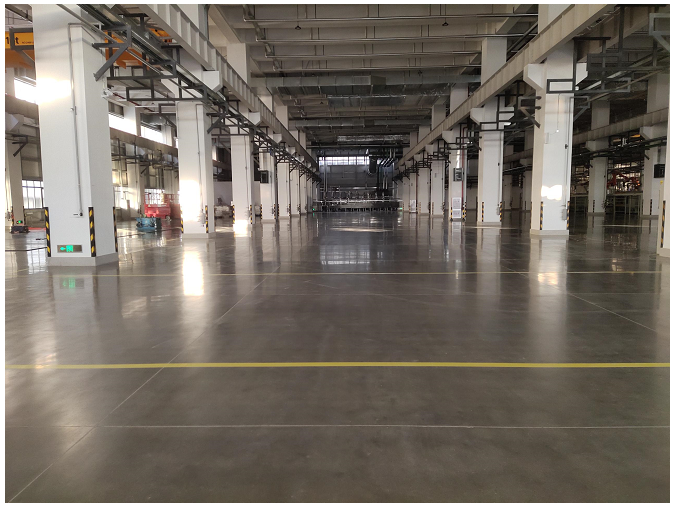 作为项目“隐形基础设施”,天津市东为建设科技有限公司(东为建设)承接的地坪工程覆盖生产车间、办公区等场景,针对项目核心需求,团队量身定制钢纤维混凝土金刚砂固化剂地坪,既满足了重型设备长期运作的抗压耐磨需求,又契合了车间无尘化生产标准,更通过绿色材料应用呼应项目环保目标。